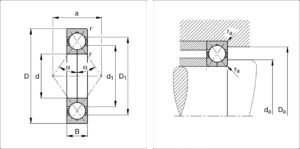Ổ bi tiếp xúc bốn điểm thường được kết hợp với ổ bi hướng kính và được sử dụng như một ổ bi trục với khoảng cách hướng kính trong một vỏ.