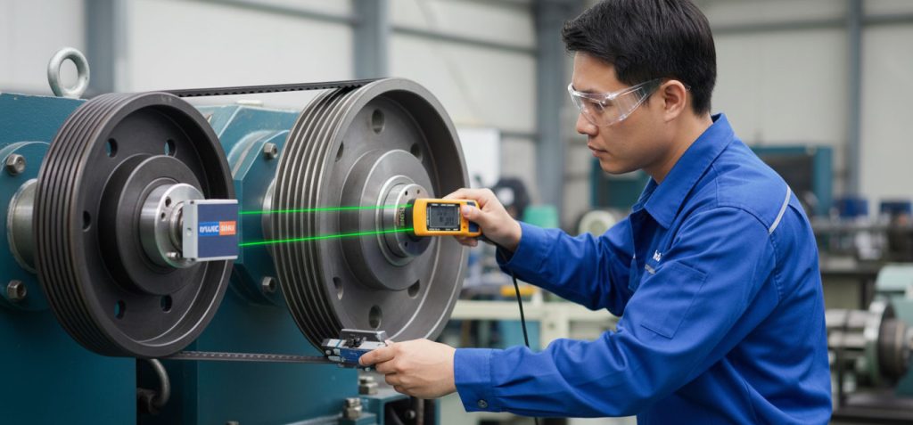 - Dùng laser alignment hoặc thước thẳng để kiểm tra thẳng hàng.